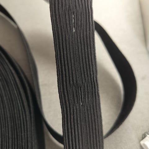 Reikäkuminauha, leveys 2,5 cm, pituus 20 metriä. Väri musta.
