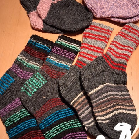 Myynnissä erikokoisia ja värisiä villasukkia hintaan 15e. Teen myös tilauksesta.