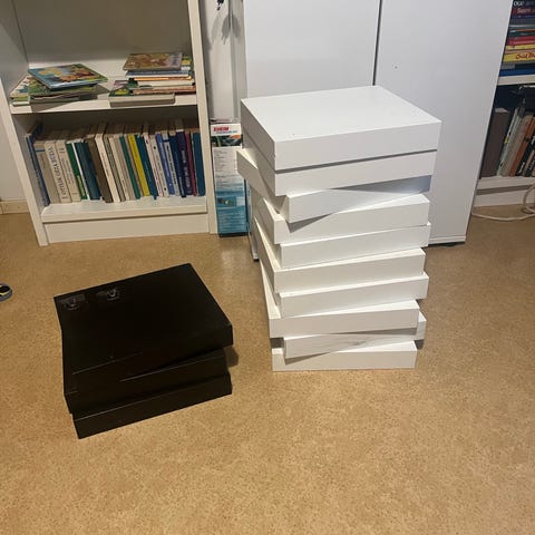 Hyväkuntoinen 3x3 kokoinen valkoinen hyllykkö, johon sopivat hyvin Ikean erilaiset laatikot. Hyllykössä pienet jalat, mitkä keventää ilmettä.