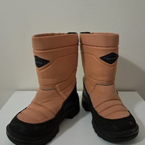Kuoma lasten talvikengät liila/violetti, koko 27. Huuhdeltu, ei sen kummempia pesty. Käytettynä hankittu -25. Kunto hyvä.