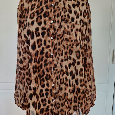 Materiaali läpinäkyvää mesh-kangasta, samettisilla leopardikuvio-painatuksilla.