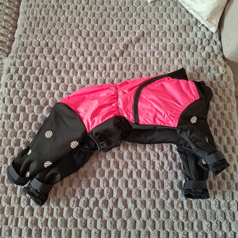 Myydään PAIKKA koiran toppahaalari. Muutamasti käytetty, jäikin pieneksi. Pehmeä vuori, heijastava kuvio. Ollut villakoiralla, menee monenlaiselle koiralle. Myynnissä myös muualla.