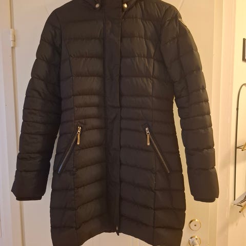 Uusi aivan käyttämätön hupullinen talvitakki. Päällisen materiaalit 50% polyesteri, 18% viskoosi, 14% akryyli, 12% villa, 6% polyamidi (huopamainen villasekoite). Vuori polyesteria. Väri punainen-musta (punaisen sävy lähinnä tumma ruispuolukkamarjapuuro, jossa myös mustaa). Myydään pois liian itselle liian pitkien hihojen takia. Nouto Tampereelta tai lähetys postikuluja vastaan.