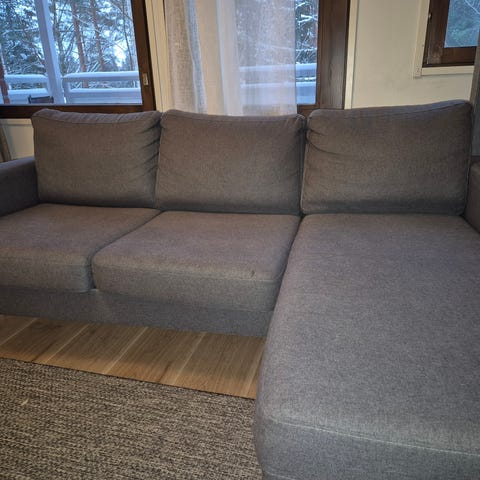 Myydään käytetty sohva. Imuroitu ja pesty tekstiilipesurilla ennen myyntiin laittoa. Ei karvastavia lemmikkejä taloudessa.