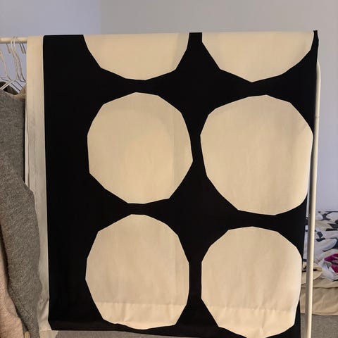 Myydään 2 kpl.Marimekko Iso Satakieli valmisverhoa jotka ovat vahvaa puuvilla/sisustuskangas/markiisikangas. Reunatekstejä ei ole. Ei ole pesty käytön jälkeen.