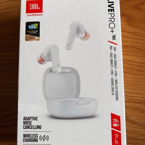 JBL kuulokkeet musta väri, langattomat, pehmustetut korvatyynyt, mukana kuljetuspussi. Vasemmalla puolella pieni vika, mutta toimii täydellisesti.