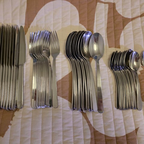 Hakusanoja: Villeroy Boch aterimet aterinsetti salaatinottimet jälkiruokalusikka aterin haarukka