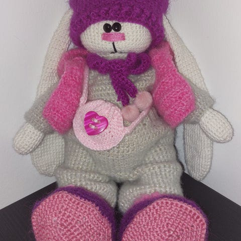 Tämä käsintehty, virkattu pupu on ihana lahja tytölle ja siitä tulee varmasti rakas ja uskollinen ystävä. Pehmeä ja suloinen pupu sopii täydellisesti leikkeihin, halaukseen ja lastenhuoneen sisustukseen. Jokainen yksityiskohta on tehty huolella ja rakkaudella.