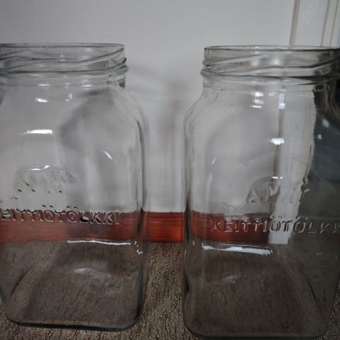 Myydään litran veroinen lasinen keittiötölkki. Korkeus 16cm. Vain nouto.