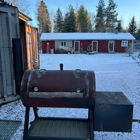 Vanha savustuspönttö. Mitat k 50cm, l 32cm, s 55cm. Ollut telineellä avotulen päällä, sisällä 2 ritilää ja taso. Voin putsata paremmin jos joku tarvii.