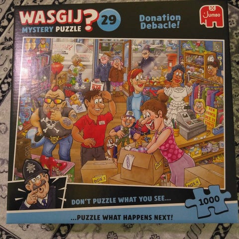 Uutena ostettu, kerran kasattu palapeli. Kaikki palat tallessa ja pussitettuna, vihjelappu myös mukana.
