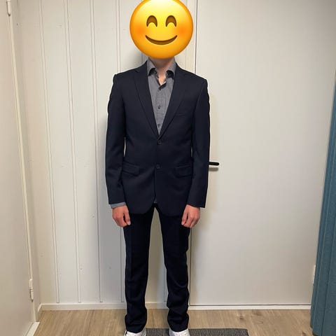 Dressmannin tumman sininen slim fit puku. Muutaman kerran käytössä mukaan myös L koon kauluspaita. Housut w32,L32. Puku 48. Ovh. 245€
