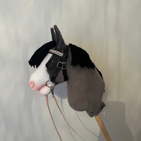 Valmistettu velboakankaasta, harja villalankaa. Korvissa kovikkeet eli pysyvät aidon hevosen korvien muodossa. Kaikki osat hevosessa on ommeltu kiinni eli ei liimattuja osia. Keppi kuuluu hintaan kiinnitettynä.