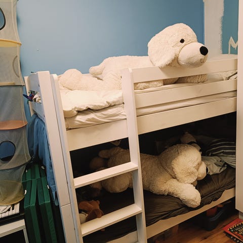 Uutena ostettu Kotokalusteen kuultovalkoinen 80x200cm kerrossänky.