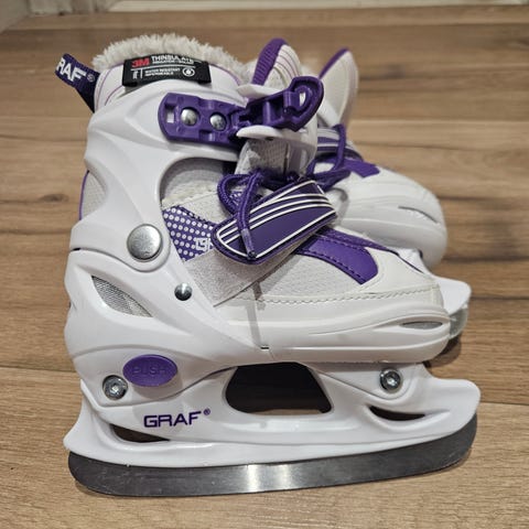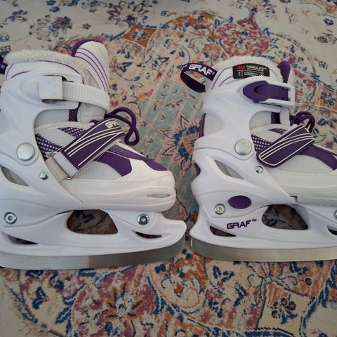 Myydään lasten säädettävät Graf-merkkiset luistimet, koko 30-33. Väri musta ja valkoinen. Kapea malli.