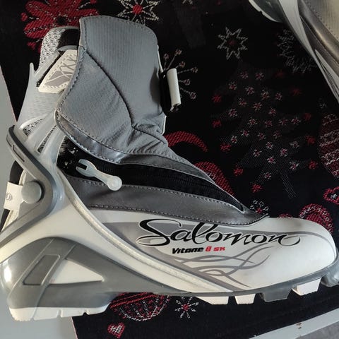 Myydään muutaman kerran jalassa olleet eli uuden veroiset Salomon Vitane 8 sk vapaan hiihtotavan monot.