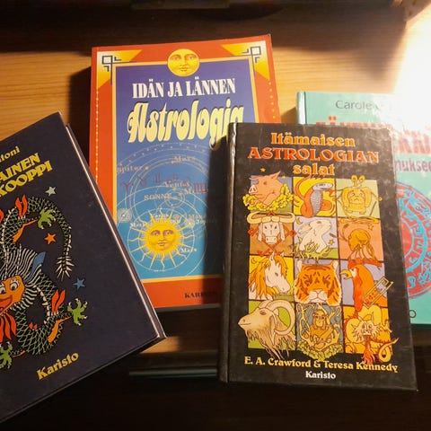 Idän ja lännen astrologia kirja, jossa käsitellään itäisen ja läntisen astrologian perusteita ja eroja. Kirja sisältää tietoa horoskooppimerkeistä, tähtikuvioista ja astrologian historiasta. Julkaisuvuosi 1997.