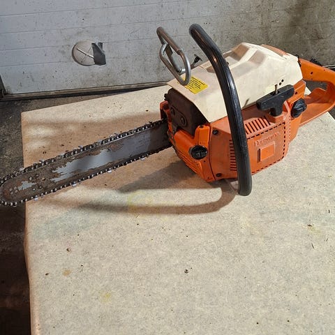 Kunnossa oleva laatusaha. Uusi bensatankin korkki. Vähän käytetty laippa ja ketju.
