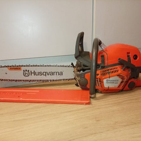 Kuin uusi kyseinen moottorisaha, mukaan alkuperäinen öljy/bensa kanisteri ja työkalut.