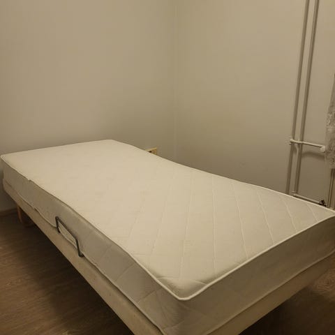 Moottoroitu sänky, joka voidaan nostaa pöydän korkeudelle ja jolla voidaan nostaa myös päätyä ja jalkopäätä. Hyvä patja irrotettavalla päällisellä, joka voidaan helposti pestä pesukoneessa. Sänky on kärryllä ja sitä on helppo siirtää. Annan myös vararungon, jos et enää tarvitse nostaa päätyjä, vaan ainoastaan sängyn ylös. Yläosa on irrotettava. Voin auttaa kuljetuksessa tarvittaessa. Sänky on painava. Saatavilla on kaksi tällaista sänkyä.