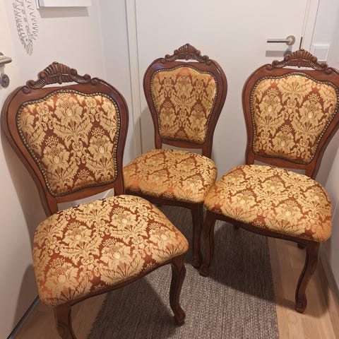 Jouko Järvisalon 80-luvulla Innolle suunnittelemat pöytä ja tuolit. Kalusteilla on jo ikää, joten niissä näkyy jo ajan patina. Tuolien selkänoja on vaneria, käsinojat puuta, jalat metallia ja istuinosat ovat aitoa nahkaa. Niissä on todella mukava istua.