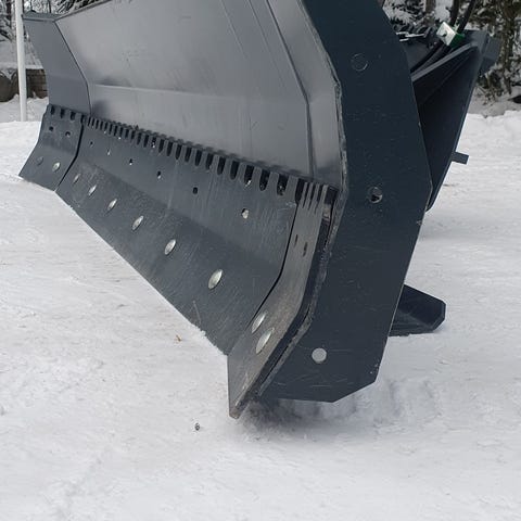 Dynac -merkkinen hydraulinen puskulevy viimeistelee työtehosi. Leveys 2200 mm. Keskitapissa “kellunta” tarvittaessa molempiin suuntiin. Kulutusterä koostuu 4 eri osasta joista jokaisessa on turvallinen jousilaukaisu jos tökkäät esteeseen. Levyn yläreunassa kätevä “kaari” ja reunoissa heijastimet tapin päässä.