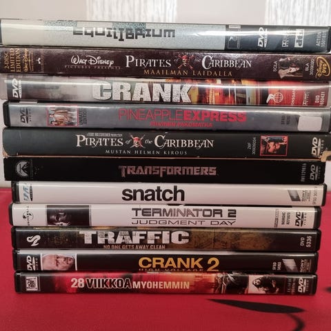 DVD elokuvia joka lähtöön ja makuun ja kaikista löytyy suomi tekstitykset ja muilla kielillä vaikka kannet olisivat eri maan kieliset. 3euroo KPL tai kaikki täys hintaan.