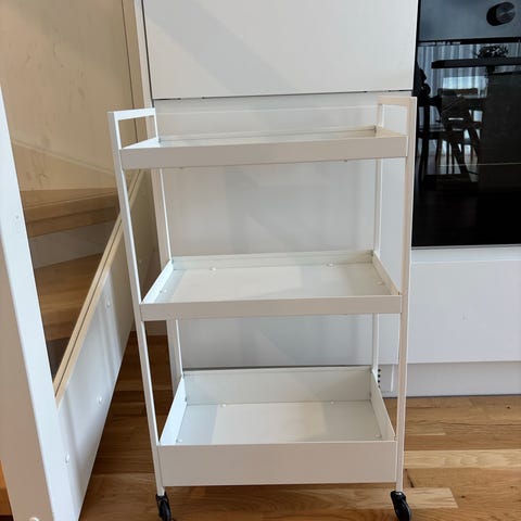 Musta Ikean Nissafors tarjoiluvaunu / korihylly. Metallia, alimmassa ”korissa” ritiläpohja. Toimii kylppärissä, keittiössä tai vaikka toimistossa.