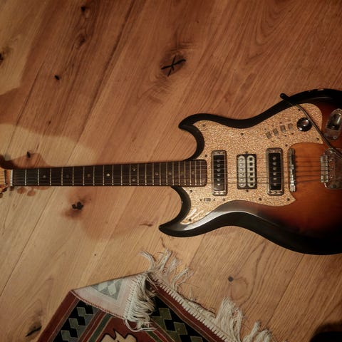 SG tyylinen sähkökitara. Kitara on hyvässä kunnossa ikäänsä nähden. Kitara on huollettu noin vuosi sitten (sähköt kolvattu uudelleen, nauhat kiillotettu ja setuppi).