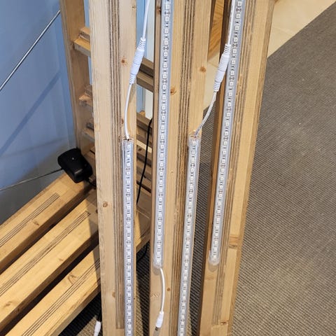Aikoinaan Kasvikupla verkkokaupasta tilattu teline puristinkiinnityksellä. Telineen saa kiinni pöydän tai hyllyn reunaan, jolloin siihen voi laittaa viherkasviamppelin tai kasvivalon roikkumaan.