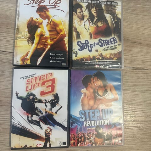Kolmen elokuvan paketti; Step Up, Step Up 2: The Streets ja Step Up 3. Kerran katsottu läpi, kunto erittäin hyvä.