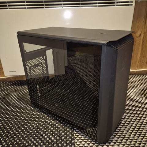 Phanteksin kotelo on hyvässä kunnossa. Etulasi puuttuu, mutta sen voi ostaa erikseen. Lasin saranat ovat vielä paikallaan.