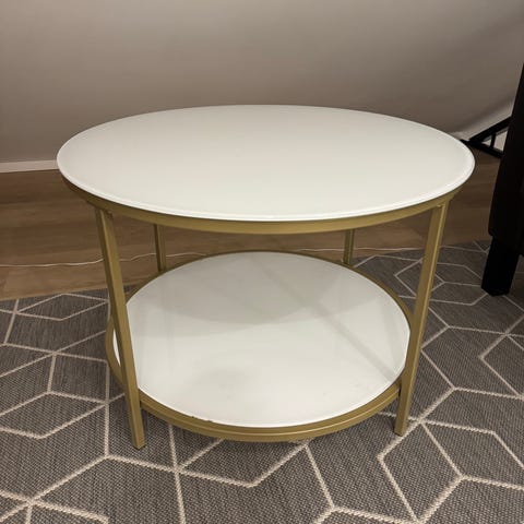 Myydään hyväkuntoinen Vekestä 3vuotta sitten ostettu pyöreä sohvapöytä. Väri tammi/musta. Pöydässä ainoastaan yksi kohta, mistä lähtenyt pieni palanen (kuva 4.)