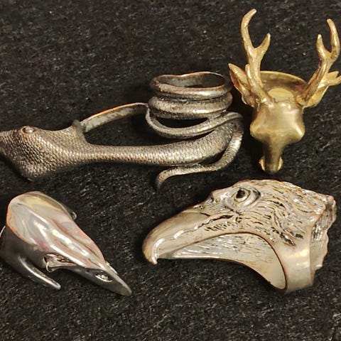Kuvassa näkyvät suurta kokoluokka olevat sormukset. 2 muuta on terästä ja 1 kullattu. Ovat olleet käytössä, lisäkuvia pyynnöstä ja koot ovat mitattu sormus viivoittimella.
