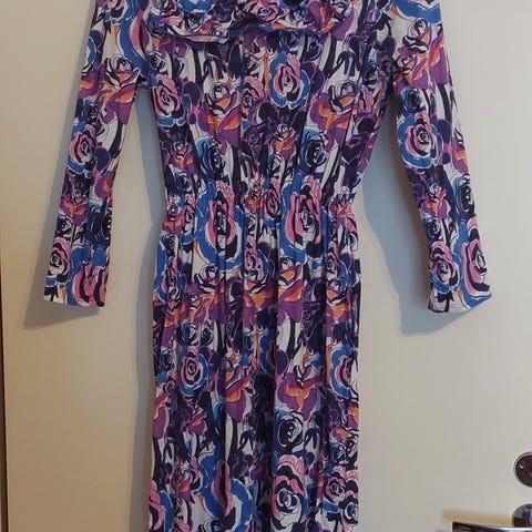Ihana Vimman Kalla II -mallineen Love-mekko. Koko S, valmistettu 100% viskoosista. Mekossa luonnonvalkoinen pohjaväri ja pinkit Love-tekstikuvioinnit.