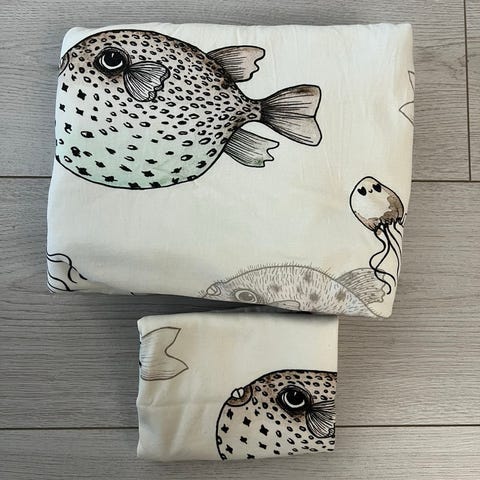❤️ Mini Rodini kirsikka baby pussilakana ja tyynylina, sopii esim. Ikean vauvan peitto ja tyyny (110x125cm peittoon ja 35x55cm tyynyyn)