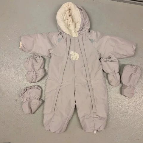 H&M lasten unisex toppapussi, koko 62/68. Väri vihreä, materiaali 100 % polyesteri. Sopii käytettäväksi ulkona lasten lämpimänä suojana.