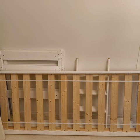 Myydään suht hyvässä käyttökunnossa oleva valkoinen puoliparvisänky, koko 200*80*100 cm.