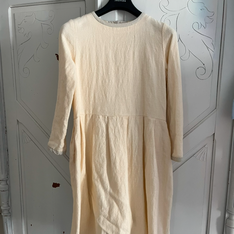 Samujin metallinhohtoinen mekko koossa 38. 67% silkkiä. Mekossa on musta vuori ja toisella sivulla vetoketju. Sekä mekon että vuorin helmat ovat viimeistelemättömiä ja hapsuisia, kuuluu mekon lookkiin. Metallilankoja saattaa hapsottaa sieltä täältä myös, se on kankaan ominaisuus.