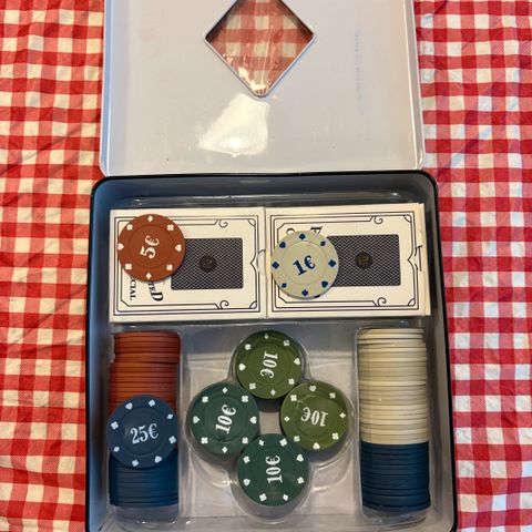 Kaikki siistissä kunnossa. Korttipakat ei alkuperäiset tässä tulleet, muoveissa edelleen.