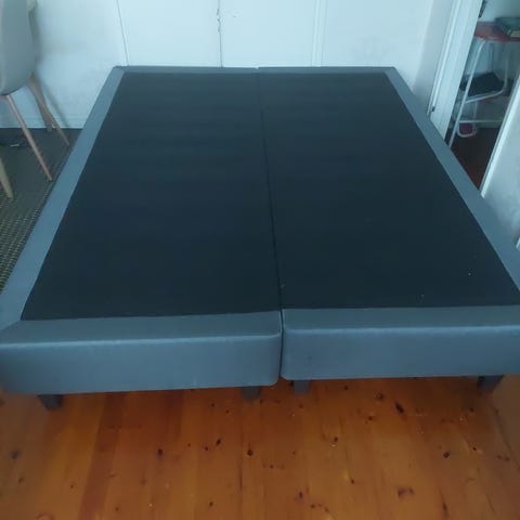 Hyväkuntoinen valkoisilla päädyillä oleva sängyn runko. Lautasäleikkö pohjassa. Ei patjoja mukaan.