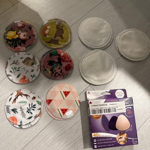 3 paris Lansinoh kestoliivinsuojia ja 4 paria puuvillaisia suojia. Pesty hajusteettomalla pesuaineella.