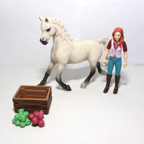 Schleich arabihevostamma Mystery ja Sarah ratsastaja.
