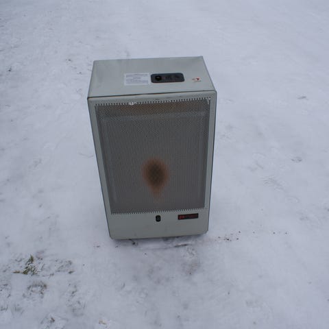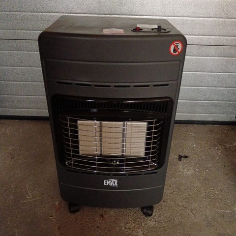 kaasulämmitin, musta väri. Sisältää säätimen lämpötilan ja virran hallintaan. Soveltuu tilojen lämmitykseen kaasulla.