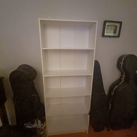 Bought from Clas Ohlson. In very good condition. You can probably still buy more shelfs and items meant for this modular shelf in Clas Ohlson.