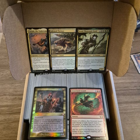Noin kilo MTG kortteja. Kuvissa näkyvät raret ja mythicit, muuten bulkkia. Ei sisällä landeja tai tokeneita