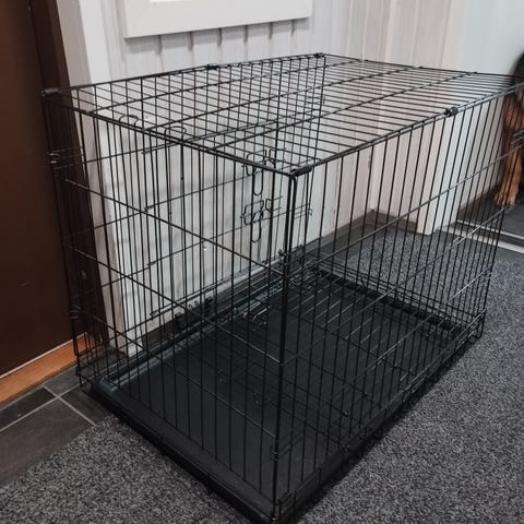 Ehyt musta metallinen kuljetushäkki. Koko 60x43x50 cm. Ollut vähällä käytöllä. Nouto Kuopio Keskusta