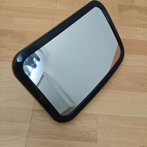 Saa kiinnitettyä niskatukeen, käännettävä ja iso kareva peili.
