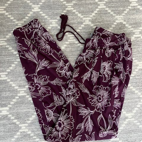 Punaiset naisten housut, koko L. Housut sopivat naisille ja ovat väriltään punaiset. Plyysipintaiset olohousut.