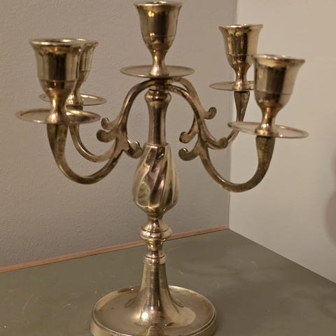 Kaunis messinkinen kullanvärinen kynttelikkö. Korkeus 20cm, leveys 22cm. Hae Ruoholahdesta. Vain käteinen.